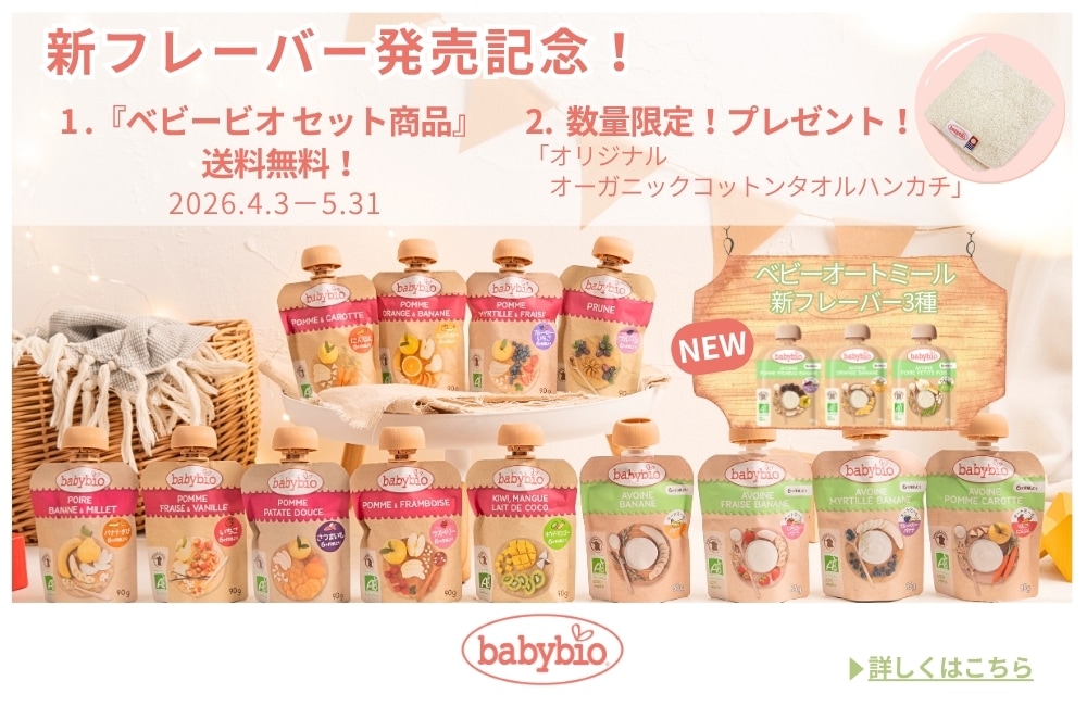 この度、月齢6ヶ月頃からの赤ちゃんの離乳食、忙しい朝や外出時のおやつに便利な【babybio】のスムージーより、