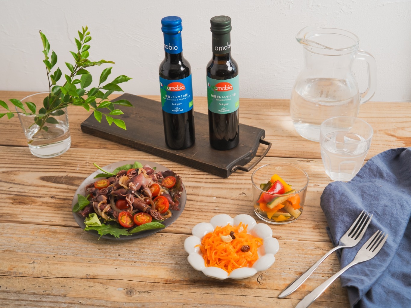 イタリア産の有機栽培ぶどうの果もろみ(ワインとなるブドウジュース)と、熟成状態が様々なワインビネガーをバランスよく加えたバルサミコ酢です。