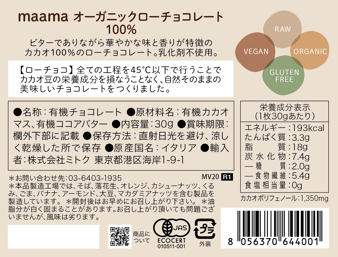 オーガニックローチョコレート100%[マーマ]〈冬季限定〉