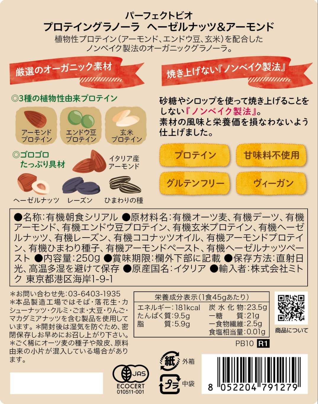 プロテイングラノーラ ヘーゼルナッツ&アーモンド[パーフェクトビオ]