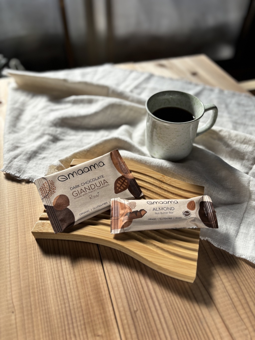 maama(マーマ)の濃厚なナッツのコクや香ばしさを楽しめるローチョコレートの板チョコとチョコレートバーのセット。