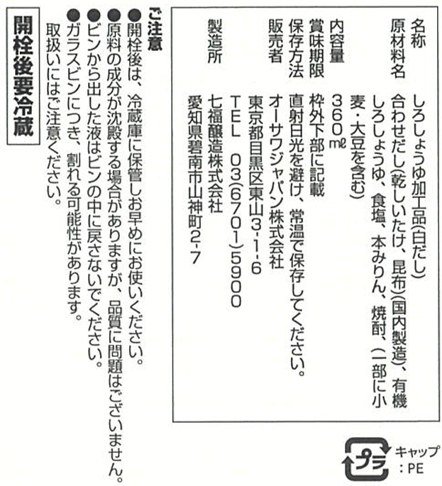 | 申込コード | OS9256 | 原材料・素材等全成分 | 合わせだし[乾しいたけ・昆布(国産)]、有機白醤油、食塩(天日塩)、本みりん、焼酎 |